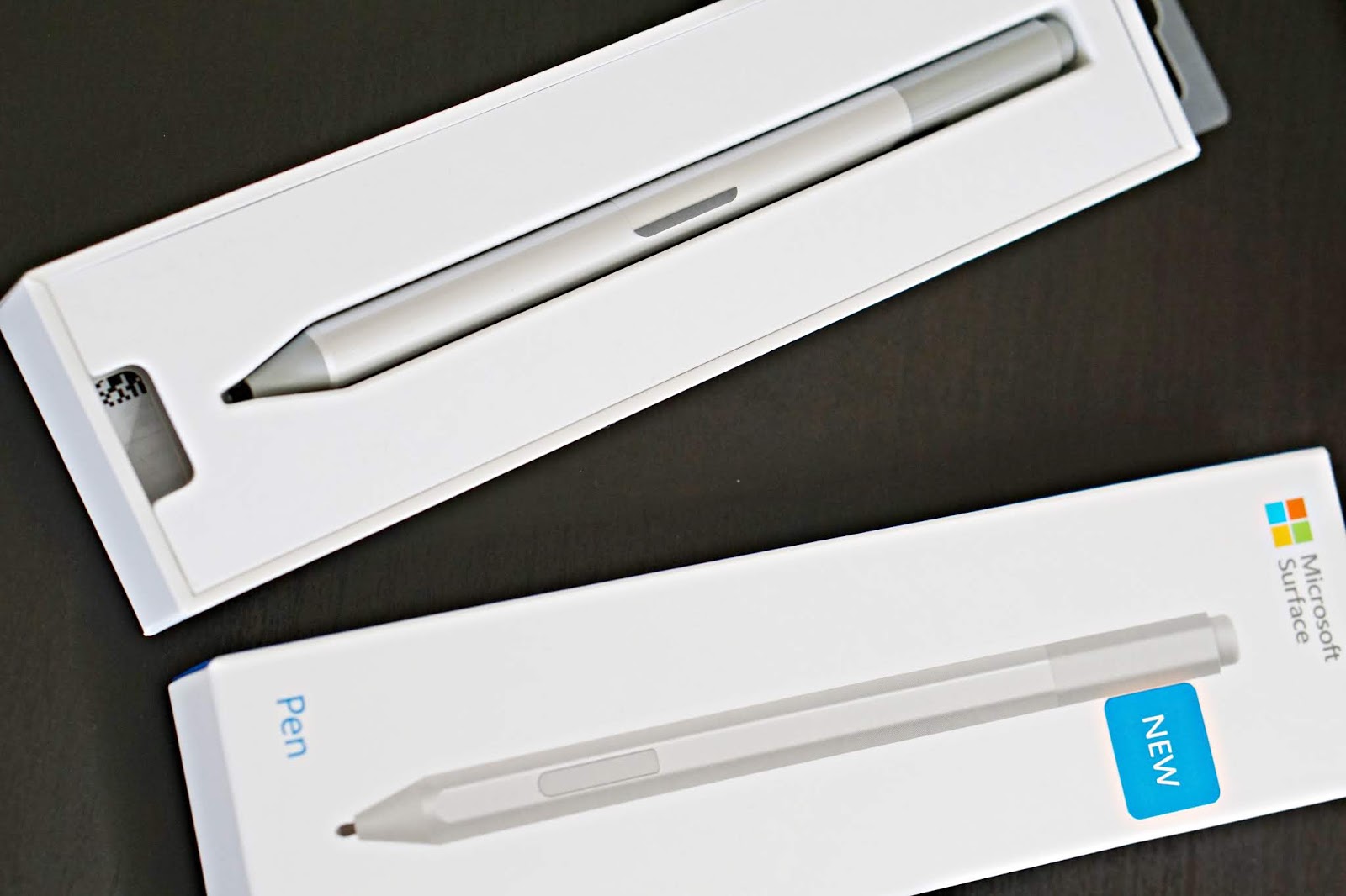 Surface Pro4 世代のペンとちがって,クリップがなくなり,側面ボタンのサイズは小さく,塗装もなくなった.実はこのボタンの塗装がくせもので,半年も使っているとみるみる剥げていってしまうダメ仕上げだった.新しいペンはそこも地味に改善されているようだ.